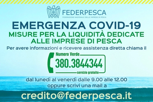 In aggiunta ai servizi di assistenza forniti alle imprese in questi mesi di emergenza Covid-19, Federpesca ha attivato da oggi un numero verde dedicato all’assistenza alle imprese che intendono utilizzare le misure finanziarie garantite da ISMEA. Tra queste, in particolare, l’accesso al credito per la liquidità da 25 mila euro, la cambiale azzurra e gli altri strumenti attivi. Un consulente sarà gratuitamente a disposizione delle imprese e dei loro consulenti dal lunedì al venerdì dalle 9.00 alle 12.00 al numero verde 380.3844344 e sarà sempre possibile chiedere informazioni inviando una email a credito@federpesca.it