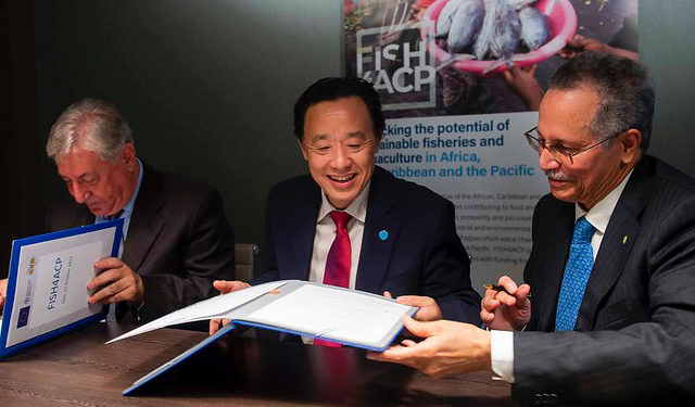 lIeri l’UE, il Gruppo degli Stati ACP (Africa, Caraibi, Pacifico) e l’Organizzazione delle Nazioni Unite per l’Alimentazione e l’Agricoltura (FAO) hanno firmato un programma quinquennale di 40 milioni di euro (FISH4ACP) per promuovere lo sviluppo sostenibile della pesca e dell’acquacoltura in Africa, nei Caraibi e negli Stati del Pacifico.