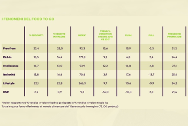 Un risultato che si deve all’impegno dei produttori alimentari e delle catene distributive nel modulare l’offerta in modo da cogliere molte e diverse occasioni d’uso. Infatti, i prodotti food to go non sono destinati solo al consumo fuori casa, ma risolvono anche il problema di pranzi e cene domestiche pronti in tempi record. E sempre più spesso, soprattutto nelle aree urbane, rappresentano una “soluzione pasto” comoda, sfiziosa e conveniente in tante situazioni, dalla pausa pranzo lavorativa al consumo in viaggio.