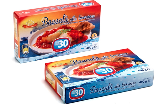 Il Baccalà alla Livornese MENO30 è reperibile nei supermercati in confezioni da 400 gr.